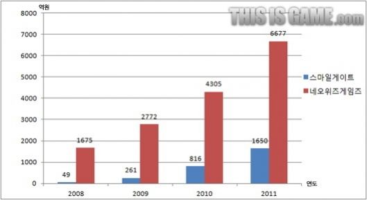 2011 年 Neowiz 与 Smile Gate 各有 50% 与 100% 的惊人的跃进式成长率,现在在中国享有最高人气的《穿越火线》可谓第一功臣,Smile Gate是《穿越火线 CF Onilne》的开发公司,而 Neowiz 负责流通。