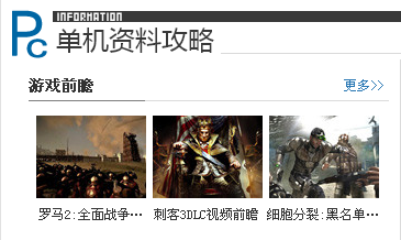 这里分为游戏前瞻、游戏测评、游戏秘籍&修改、游戏补丁、视频攻略和图文攻略,这里可以查找攻略、看游戏测评,图文并茂。