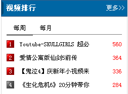 视频栏右侧设有视频排行榜,最近什么视频最火,这里一看便知。排行时间可分每周及每月,方便玩家查询。