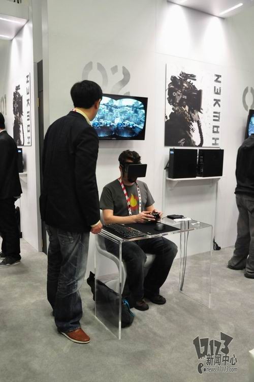Oculus VR公司一直以来都是头戴式显示器的最前沿开发者,他们的理念促使他们在2012年发布了Oculus Rift,一款支持真实视角移动的头戴式环绕显示装置,目的是为了实现玩家在和自身角色在虚拟环境下的同步视角移动,当佩戴者转头或是上下移动视角时,同样也会得到相应的反馈。该装置也在今年的游戏开发者大会现场提供了试用,17173的现场记者同样试用了这款装置,并在排队期间拍下了一些照片。