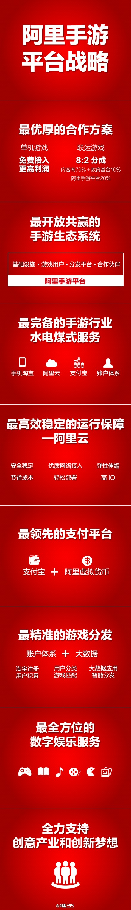 今年年初,阿里高调宣布推出“针对”腾讯的手游平台,除了阿里系公司累计7亿的用户量和配套资源,还祭出了联营合作者将采用8:2(腾讯这一比例为3:7)分成模式的杀手锏,一度造成腾讯股价单日蒸发138亿。