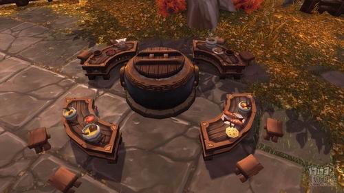 除此之外,酒文化这个特别的中国文化也如饮食文化一样,在游戏系统中被重视并重现了。酿造之道成为六大熊猫人料理分支中的一个,风暴烈酒酿酒厂副本中的最后战斗则重现了酿造的过程,半山农场总是喝的烂醉的锦鱼人贾古却能够预言未来
