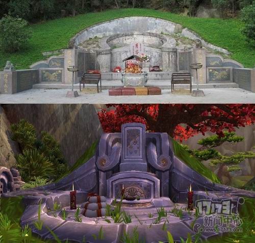 在潘达利亚大陆上,不乏一些熊猫人先祖的坟墓,仔细观察很容易就能发现这些坟墓和中国传统坟墓在外观上相当一致,进一步深究的话,坟前所拜访的香烛和供品,也完全符合中国人祭墓的习俗。