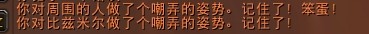 /forthehorde 或 /为了部落与联盟对应的 /forthealliance 或 /为了联盟 不会在聊天框有红字提示,但你的角色会有非常夸张的动作