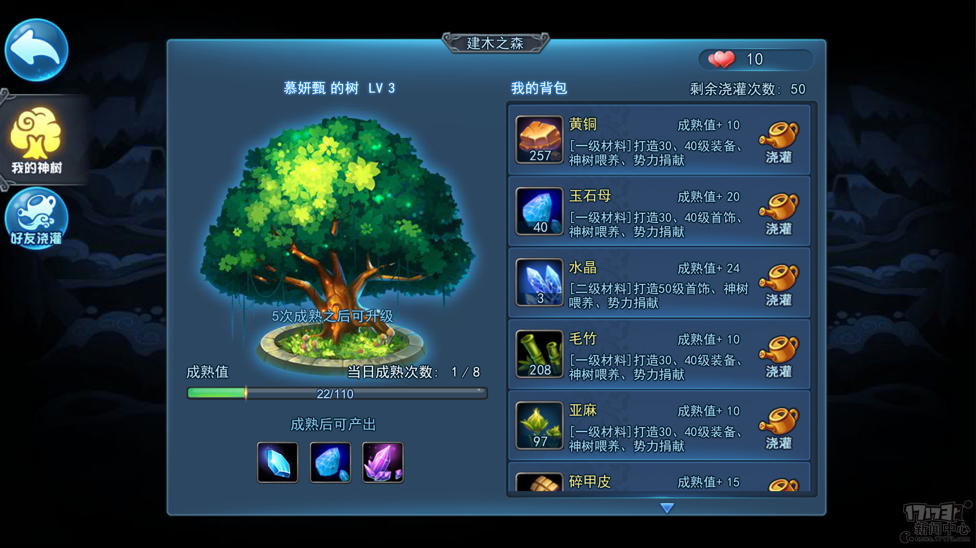 玩家的“家园”里有一棵“建木之树”,每日浇灌呵护就能一日数次的掉落金币和各种道具。和好友一起浇灌,还可以收获友谊和“情义值”。“情义值”是《天下HD》中好友系统的特色设置,情义值越高,代表玩家和这位好友的联系越紧密,双方能获得金币、道具、经验等奖励越丰厚!