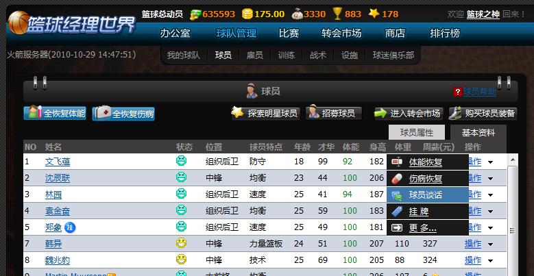 1、 和自己的球员进行交谈,可以有小的提升球员的状态,每小时的第一次跟本队的某个球员对话,可以增加该球员状态值1点,同一个球员一天内最多可以增加5点状态值。