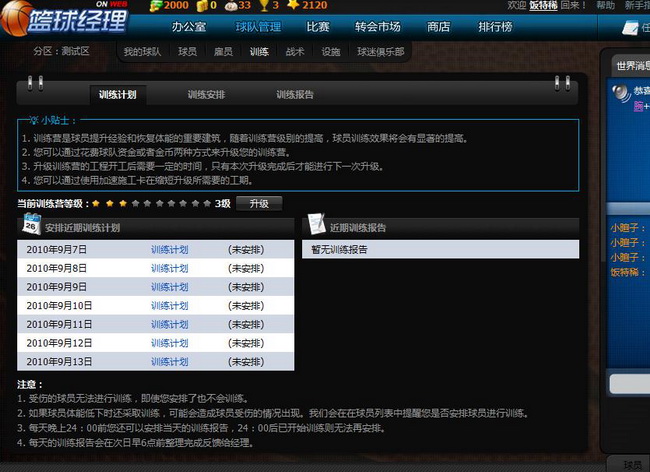 2,如果球员体能低下时还采取训练,可能会造成球员受伤的情况出现。我们会在在球员列表中提醒您是否安排球员进行训练。