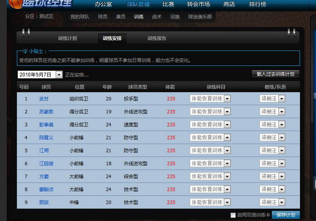 1,受伤的球员无法进行训练,即使您安排了也不会训练。