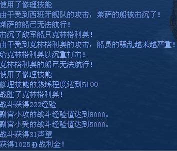 ……好吧我大致解释一下。在莱萨同学彻底沉没的瞬间,我的船被打骚乱了,然后同一瞬间我按下了开炮,然后这一刻灵魂附体——我不是一个人在战斗!我不是一个人!——神奇的在我都没明白过来的时候,克林格利奥的旗舰,被暴击了大概270点,沉没了。