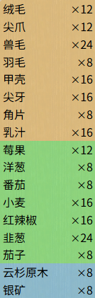 | 有猫票(3×) | 收益: 22521 ( -1578) = 20943 ![]() 1.休息 2.[菜肴]新薯沙拉、高山萝卜沙拉、无人面包、高山萝卜沙拉、[药品]无人面包、辣椒粉 3.[纺织制品]绳索、骑士帽、[防具]鳞指套、骑士帽 4.[木工制品]木刷、手杖、木刷、手杖 5.[药品]辣椒粉、韭葱洋葱汤、[动物制品]鳞指套、韭葱洋葱汤 6.[木工制品]木刷、云杉圆盾、木刷、云杉圆盾 7.休息 |