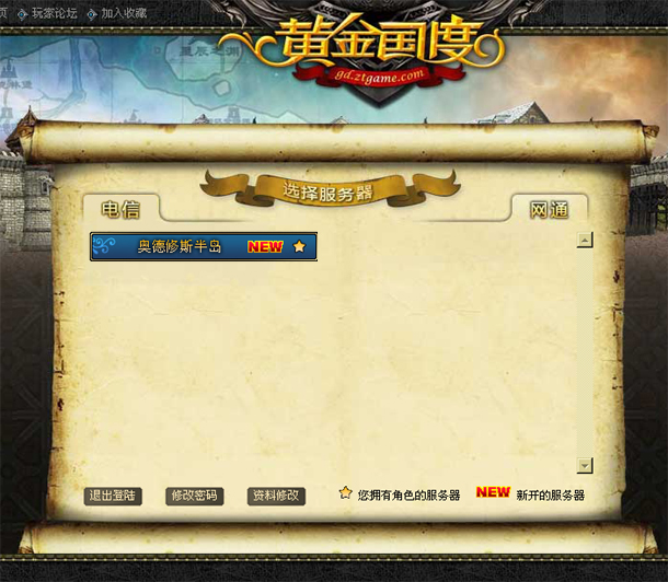 选择您所要进入的服务区,服务器上“NEW”的标记代表新开服务器,“星”代表您在该服务器已有角色。