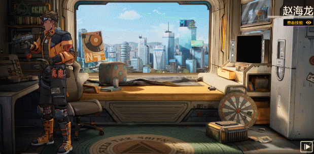 再比如说玩法教程和技能演示又用了类似《辐射》哔哔小子的表现手法,单独做了一套复古动画风格的短片,由角色对应配音演员进行讲解。