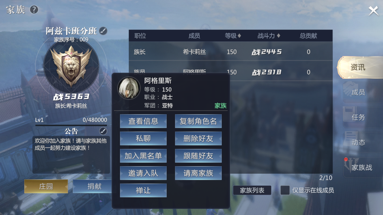 1、禅让:家族族长可以通过家族页面将族长之位禅让给别的家族成员。