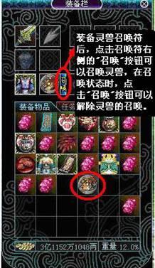 • 装备灵兽召唤符后玩家才具有召唤灵兽的能力,使用召唤符召唤灵兽后,召唤符将会被锁定在装备栏中无法取下。如果玩家想从装备栏中取下宠物,必须先解除召唤。玩家下线时会自动解除召唤!