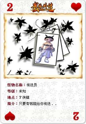 另外请玩家朋友一定注意:上传图片人物仅限于游戏中各种NPC,不包括玩家NPC。而且,扑克牌设计也不仅仅是截一张图传上来这么简单的哦,牌面的美观也是很重要的!因此,越是那些经过玩家精心修饰的图,得到评选美工们认可的可能性也就越大,获奖的可能性也就提高了哦!而且,如果有玩家朋友们擅长设计,那么也可以自己进行扑克牌样式的创造,但这是指扑克的周围花边创造,扑克牌面的要求和上面是一样的,而且模板大小要与官方给的模板一致。这类作品属于原创,是不能在官方活动页面提交的,请进行了原创作品创作的玩家将作品投稿到专用邮箱:chuxu@world2.cn;投稿标题格式为:《武林外传》扑克牌设计。