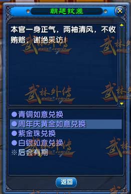一.在**钦差处领取“周年庆黄金如意兑换”任务。