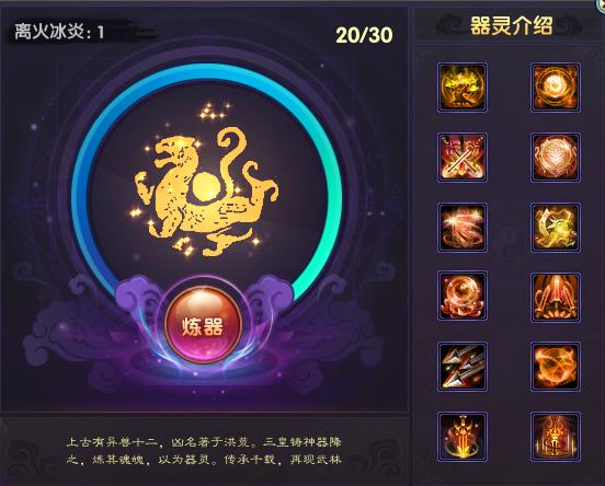 器灵通过神器界面的炼器,消耗离火冰炎获得的。器灵为三神器通用,即切换神器的操作中,器灵不会受到影响。