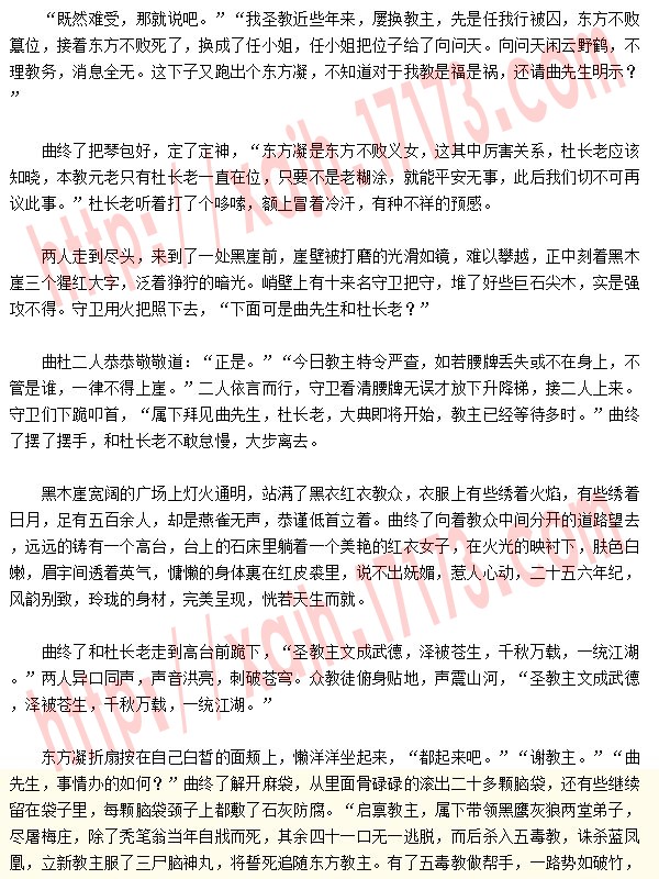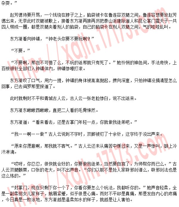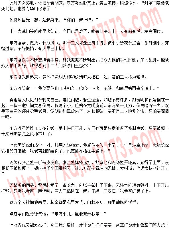 众人均想谁会信你鬼话,谁不知道魔教中人最无信誉可言,东方凝要是反悔,或者谁再惹她不高兴,岂不是又要遭难,谁也不去理她。