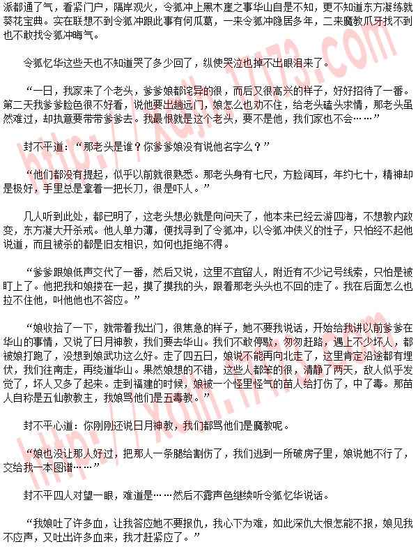 众人都是哀痛一片,封不平跪倒在地上,老泪纵横,“当真是天要亡我华山么?老朽死不足惜,实在愧对列为尊师……”众人又哭又骂,那里还有英雄气概。