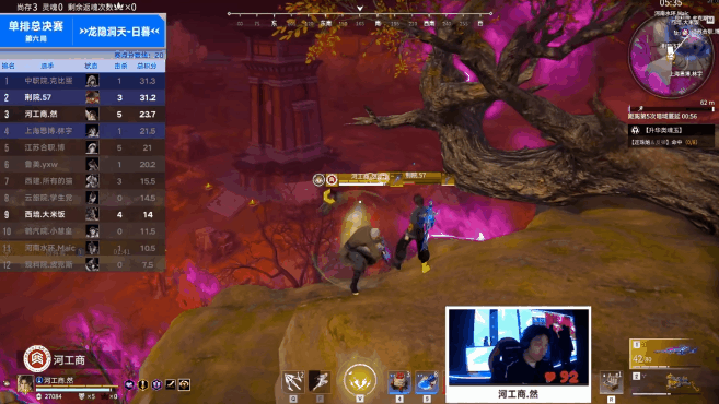 第六局,场上仅有中职院.克比蛋、荆院.57、上海思博.林宇三位选手开启赛点。