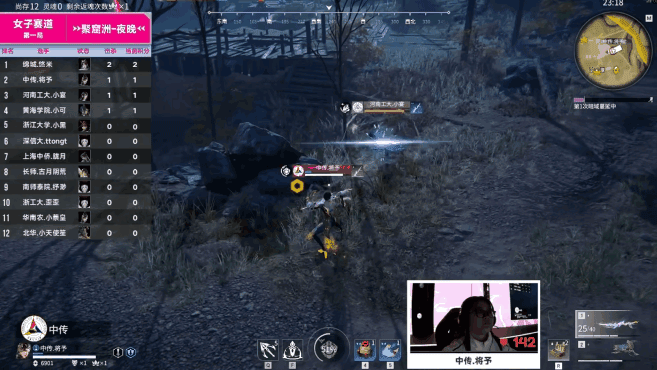 决赛圈大连民大.嬛嬛和海经院.富上演攻城弩和鸟铳中门对狙,而嬛嬛凭借几发攻城弩直接将海经院.47的击败收入囊中。