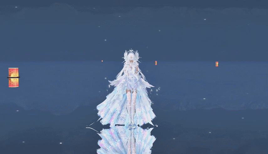 配套发型为清冷圣洁的白色长发,昼夜之交、破晓时分,那第一缕最纯净的天光,便在发间静谧流淌。
