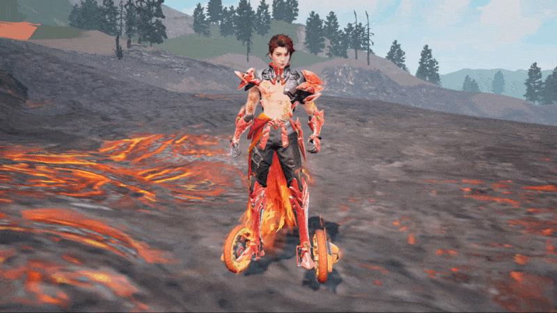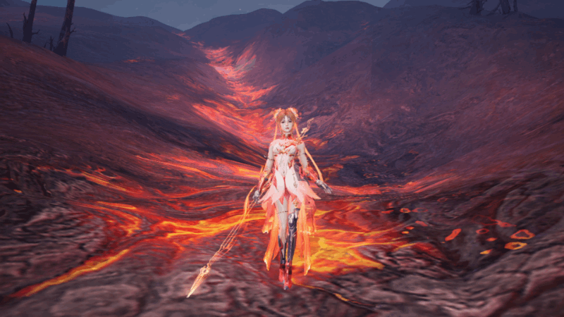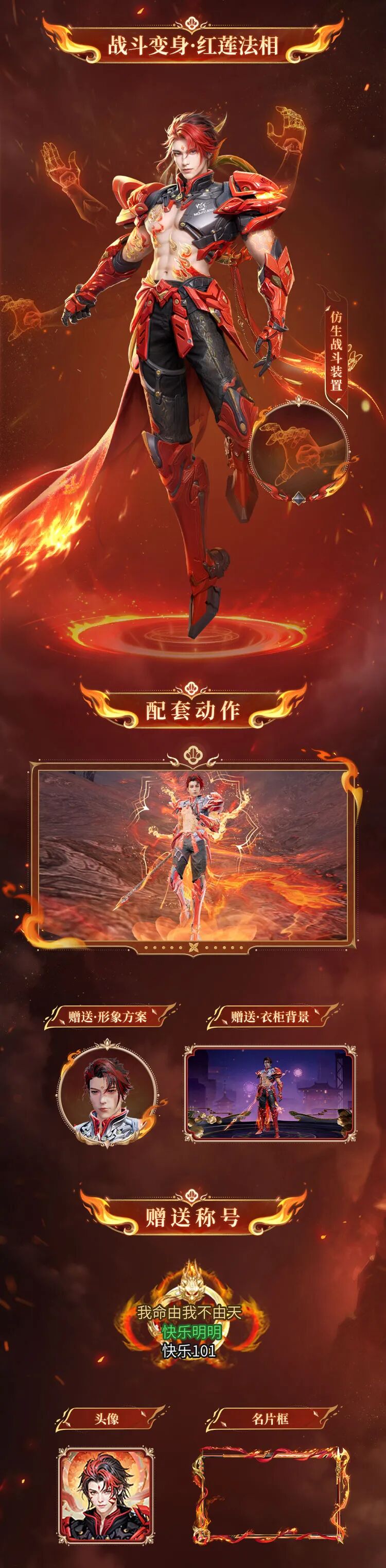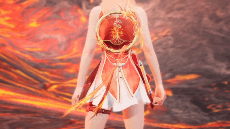 同时,穿搭时装-红莲业火可触发联动特效效果
