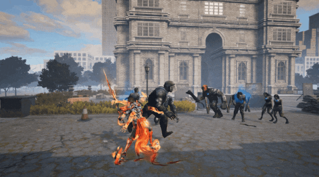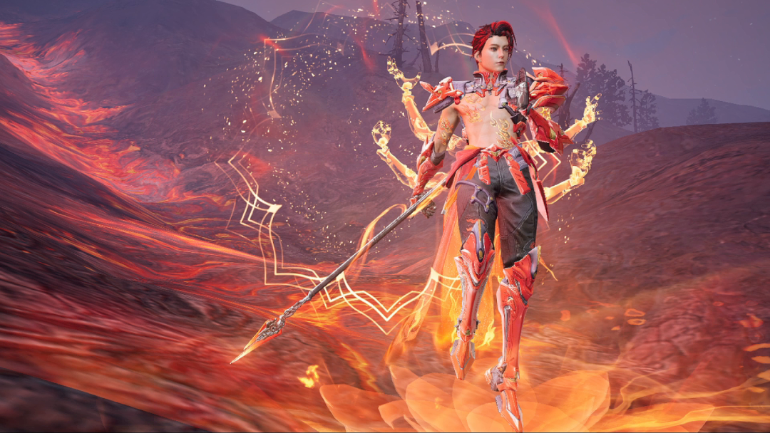 四臂腾炎焚天地,一戟破阵显神威