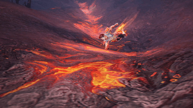 携风火轮踏焰而行,混天绫随风舞动