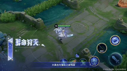 大禹释放二技能会进入狩天状态,能够强化自身获得加速与远程普攻:命中目标可回复一定血量;首次命中目标,还可额外造成伤害与减速。