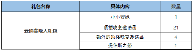 1个顶楼晚宴邀请函(售价:2300点券)