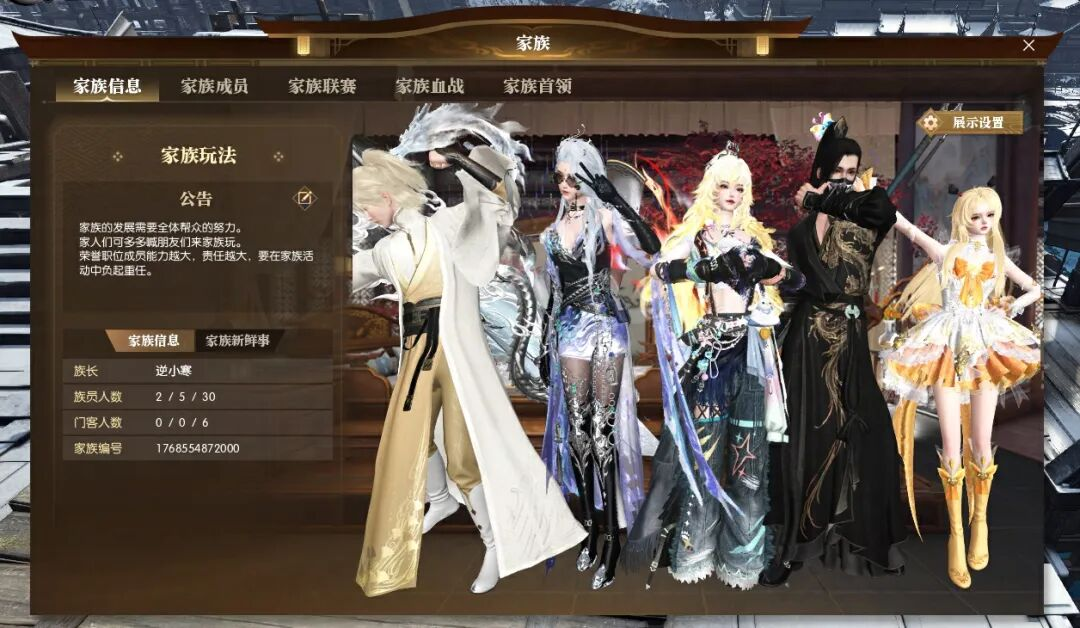 4、家族成员总共36名,其中30名正式族员,6名门客,部分玩法门客将无法入场,但无需担心,只要家族参与了玩法,门客也能获取奖励。