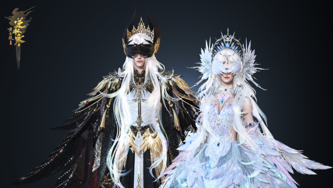 1) 女款时装【冥宙星熠】可通过衣形变去除裙摆。男款时装【冥宙曜火】则可通过衣形变去掉披风。