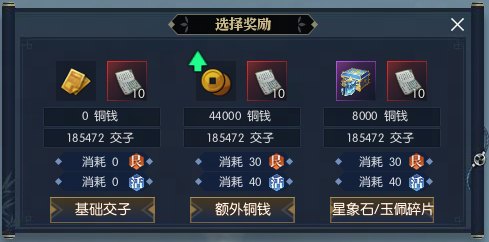 b) 江湖威名达到6级后,同门在世外昆仑或富甲天下押镖结束可选择【玉佩/星象石碎片匣】作为奖励,自选获得玉佩碎片或星象石碎片作为奖励。江湖威名达到7级、8级后,获得的星象石碎片数量也将提升。