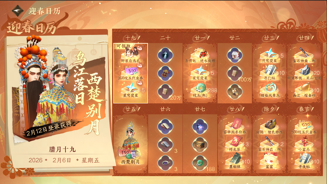 2月12日:登录送非遗京剧联动时装【乌江落日/西楚别月】+150纹玉代金券