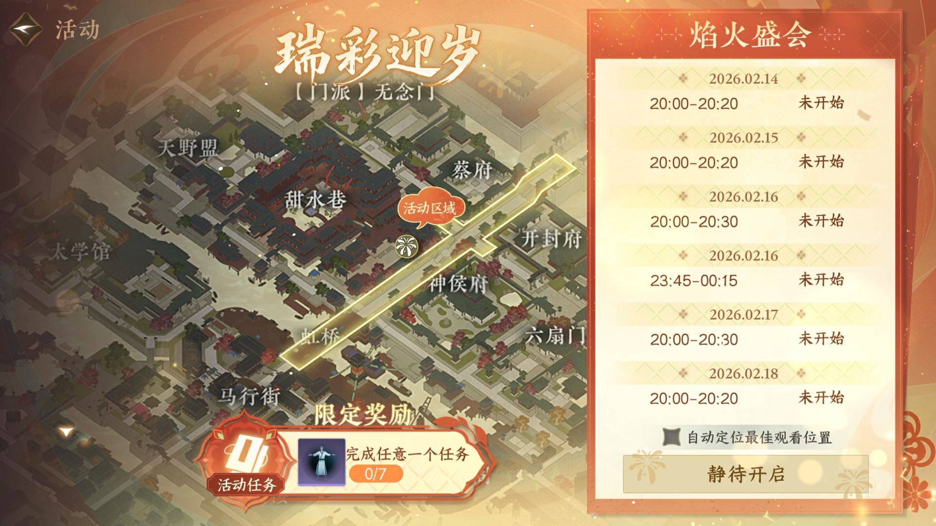 温情剧情:完成全新心境任务【天下人间共此春·午马】,在温暖动人的故事中感受江湖独有的温情年味。任务完成后,限定配饰、专属称号等多重好礼直接打包带走。