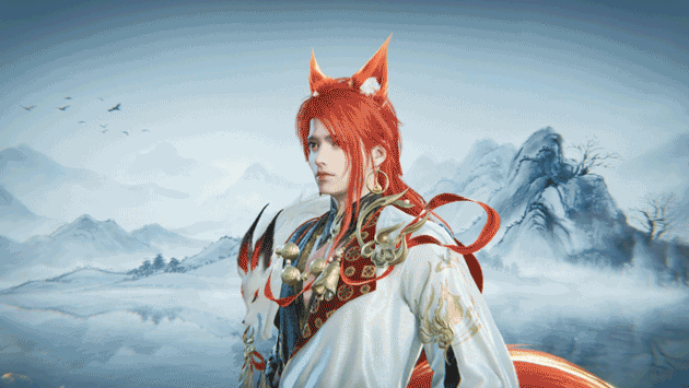 赤耳白狐眯起眼睛软乎乎地趴在他的肩头,衔着翡翠玉环,不知是少年的随从还是本体?他身着青白色的长衫,衣摆处带有鎏金焰火的纹样,意气风发。
