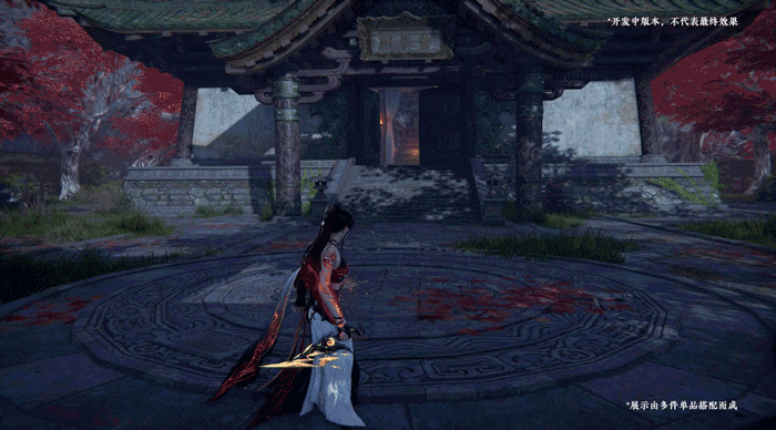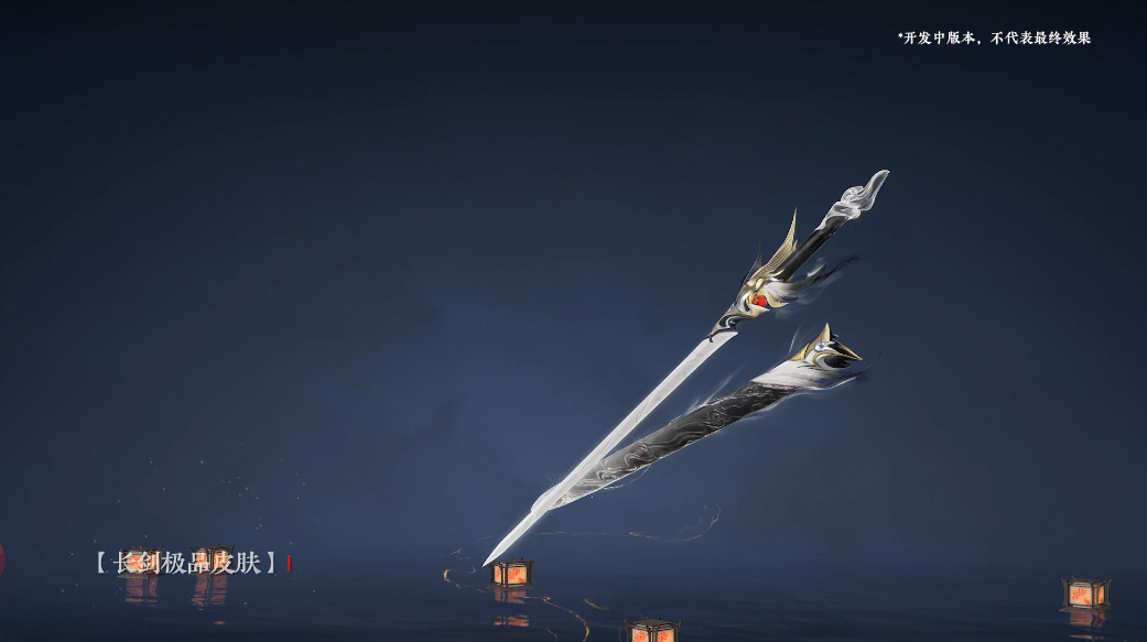 呈火相时,刃身化作流焰状的朱红玉石,伴有真气升腾;呈水相时,犹如螺尖般锐利,配有涓涓水流特效;