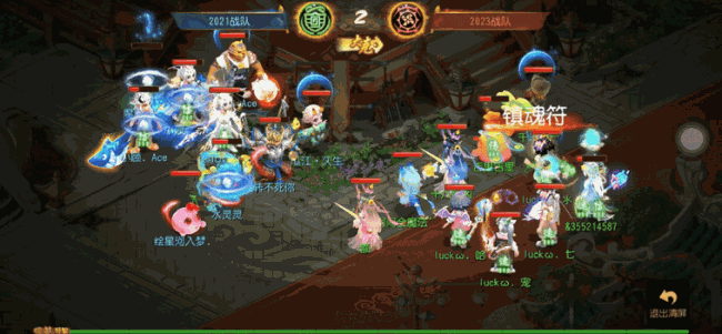 第1回合3名女儿村针对的目标也不同,番天印控一速,封印双输出,直接封死观战方进攻路线,保证自身续航;2名输出单位则用特技输出,保证自身出手。