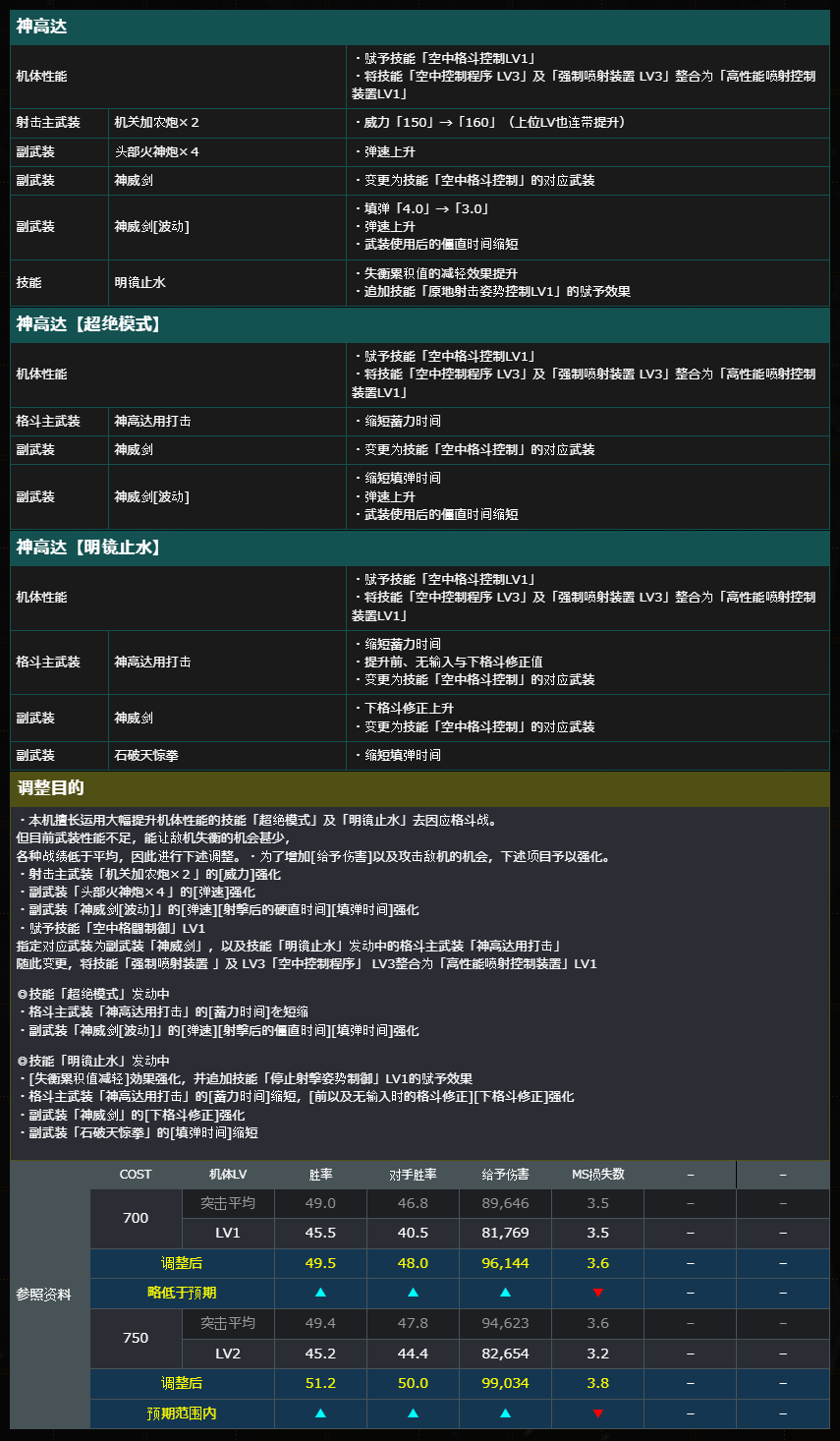 其他机种版本于2025年12月实施的机体调整,在Steam®版本也将实施。