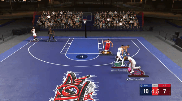 这里分享五突库里的两个进攻注意事项,首先是库里投篮包有点小前倾,相比乔丹和瓜哥被后帽的概率要稍微大一些,然后就是库里背运虽然好用,但不宜多用,这个动作会扣两次体力,一个回合来两次就闪黄了。