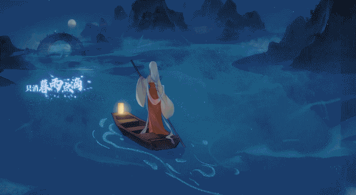 一叶扁舟自夜色中浮现,朦胧雾影中,撑船人的身影孤寂而落寞,似有难言过往。