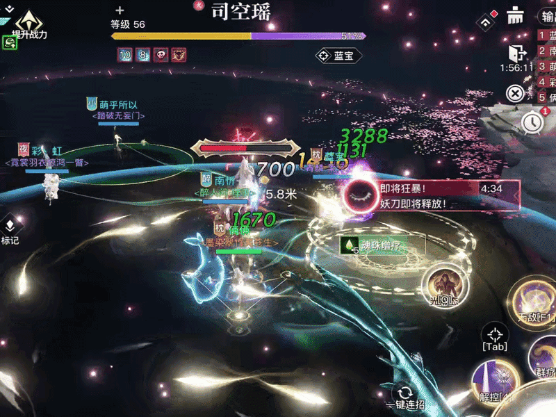 司空瑶的多个技能都会在场上留下【魂灯】,困难难度是按照技能命中进行【魂灯】召唤,而弑神难度则是每隔几秒自动召唤的!并且魂灯会一直存在,如果不及时清理,当场上魂灯数量达到6个时,会触发【追星】——火焰流星不停追逐玩家,很容易团灭。