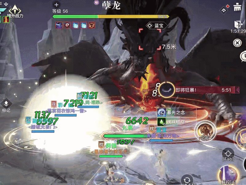 孽龙全身吸收能量飞向上空,最终能量爆开并对全屏进行极致打击!全员根据提示躲避到九璃身后。