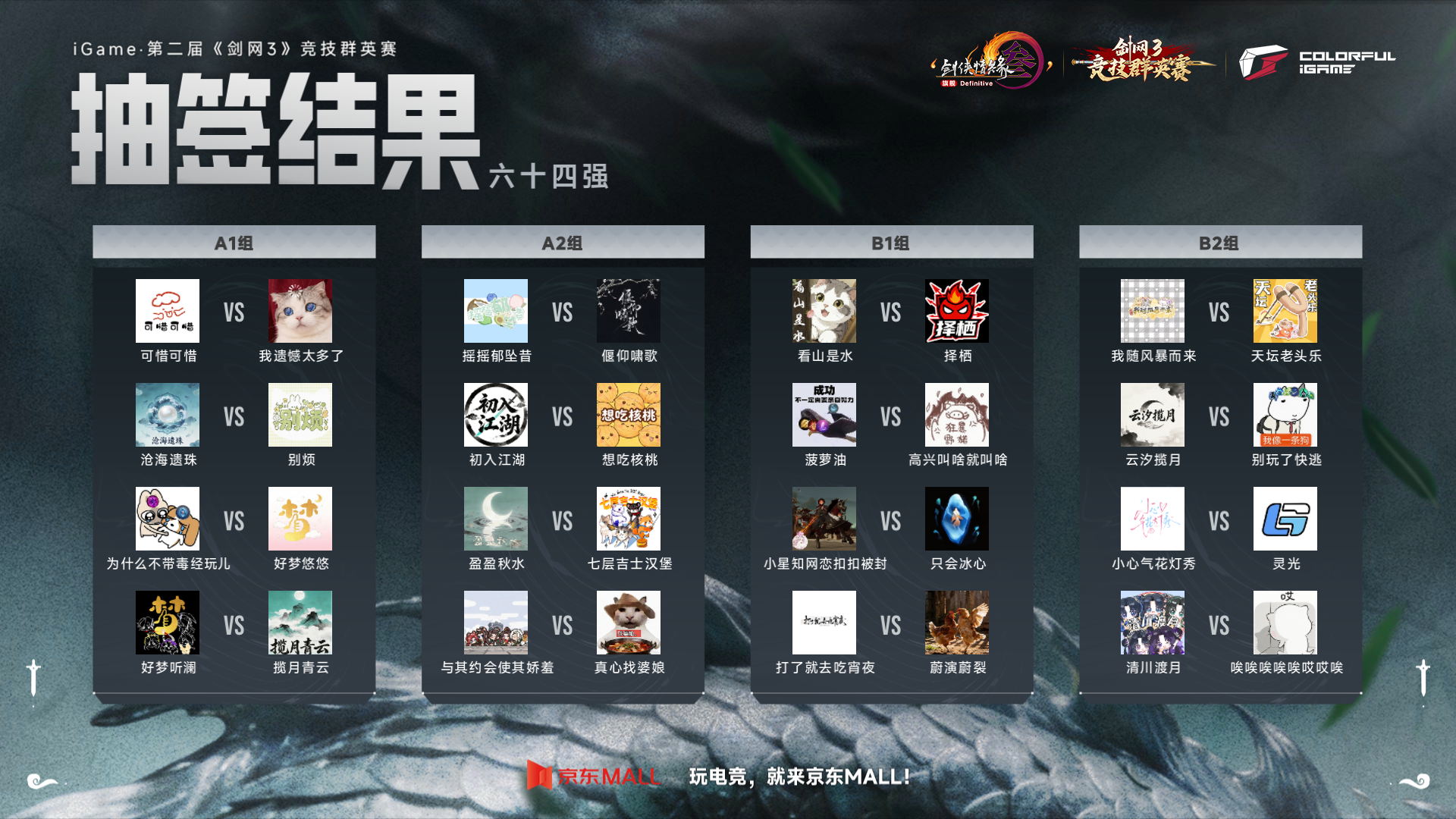 经过海选赛的激烈鏖战,第二届《剑网3》竞技群英赛已正式决出64强队伍,恭喜脱颖而出的侠士们跻身下一阶段赛程!赛事竞猜现已上线,参与竞猜赢取丰厚奖励,一起为支持的战队助威吧!