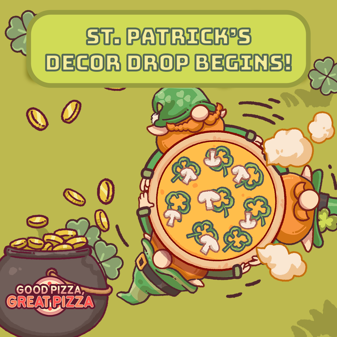 《可口的披萨,美味的披萨》三叶草节装饰活动限时开启!3月18日-4月14日,解锁全新装饰与挑战,修复闪退问题。更新游戏版本,参与绿色主题盛宴,赢取彩虹尽头好礼!🍀