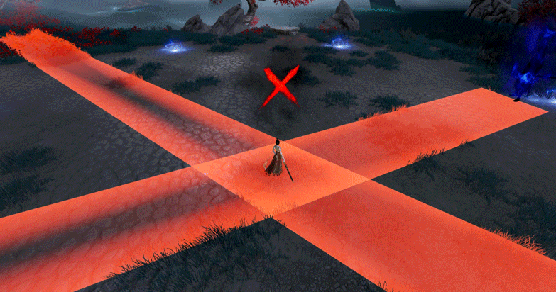 每隔一段时间,孟星魂会利用战场周围的阴影发动攻击。影子会随机选择战场中的1名少侠,对其进行矩形范围打击,造成中量伤害。