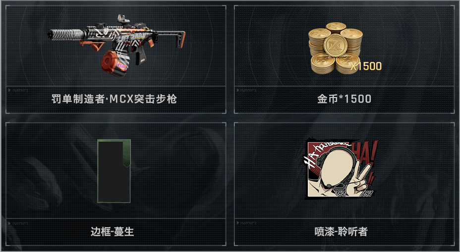 1.完成异变山谷任务线免费获取1500金币+主题限定奖励!聆听低语,异变已至。踏入迷雾,直视深渊。参与全新赛季活动——【山谷诡事】,完成相应挑战任务与带出任务,解锁任务故事线,即可免费获取1500金币、紫色品质枪械涂装【罚单制造者 · MCX突击步枪】等多款异变主题限定奖励。