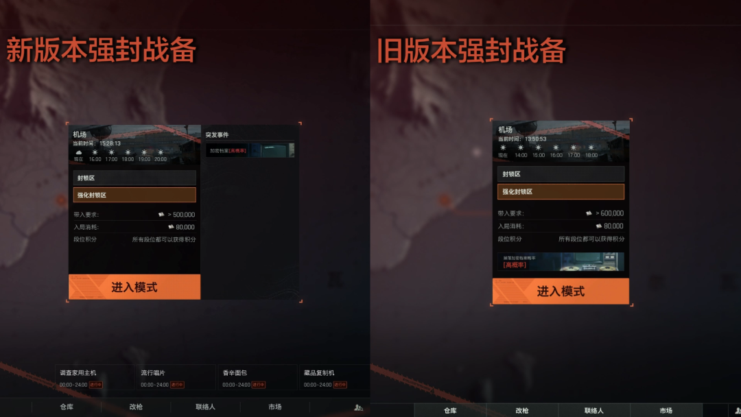 在战备方面,我们对强封模式的入局战备门槛进行了调整,让各地图的战备要求更加合理,更有梯度。