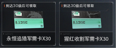 3.60张军需卡免费领!赛季开启后,角色到达30级即可免费领取30张永恒追猎军需卡和30张猩红收割军需卡,可用于全新角色和近战武器军需抽奖!